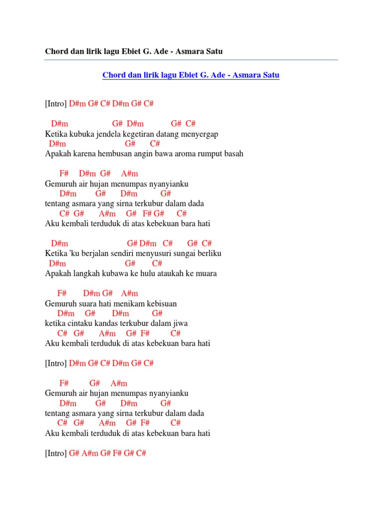 Chord Dan Lirik Lagu Ebiet G Ade Asmara Satu
