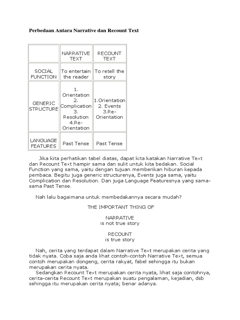 The Difference Between Recount And Narrative Text Is Clear English Admin