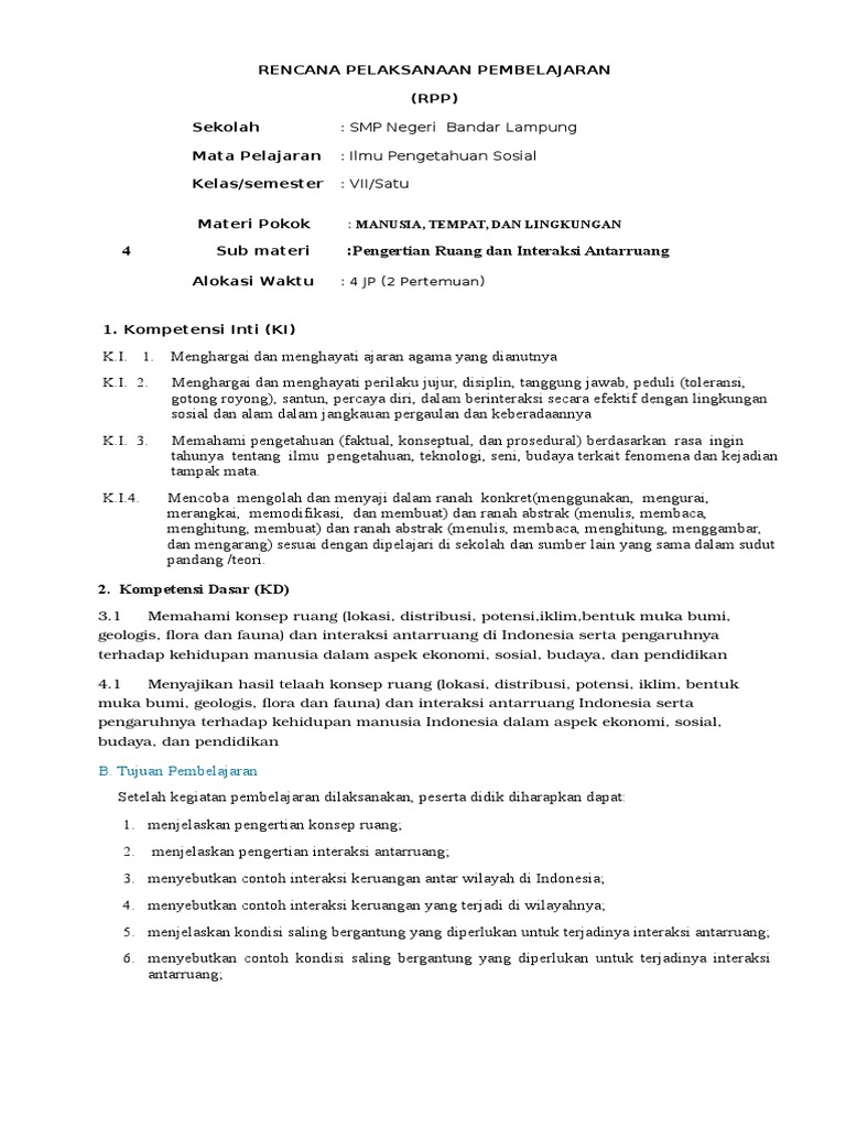 Rpp Ips Kelas 7 Kurikulum 2013 Revisi 2016 Semester 1 Dan 2